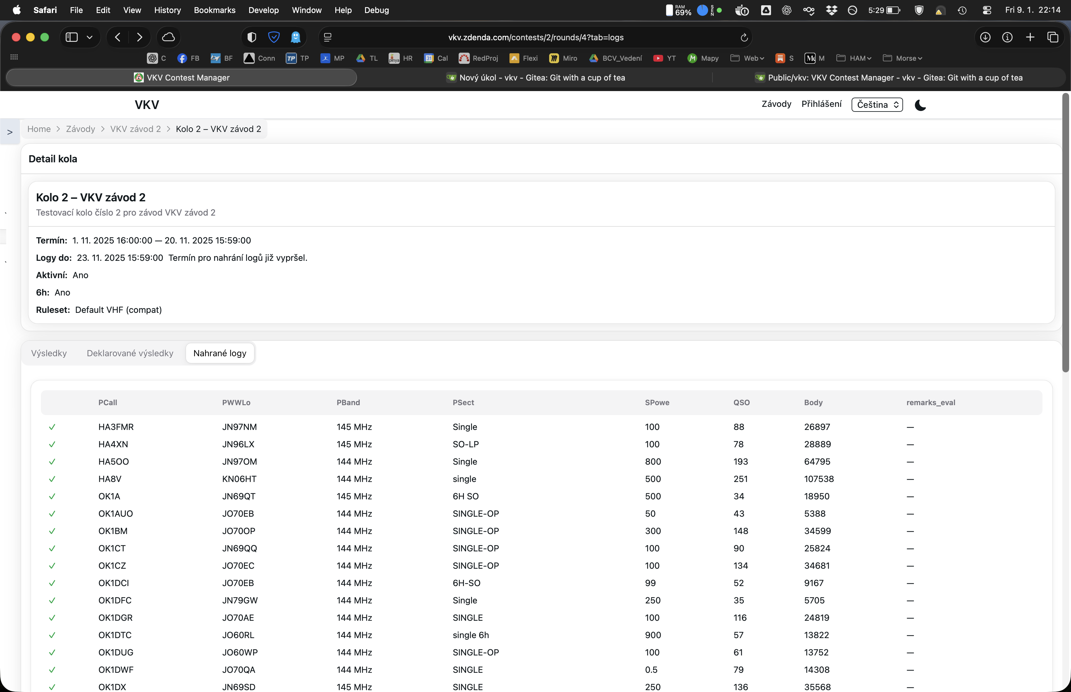 Pokud se zobrazuje detail logu, tak si závodník může vyčíst z už nahraných logů např. lokátory a opravit si data ve svém souboru před nahráním.